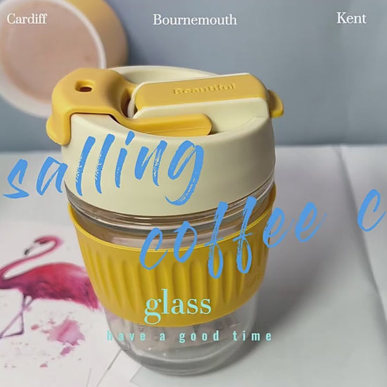Glass Coffee & Tea With 2 In 1 Sipper Straw Lid & Lock Glass Tumbler Glass Coffee cup With Straw & Airtight